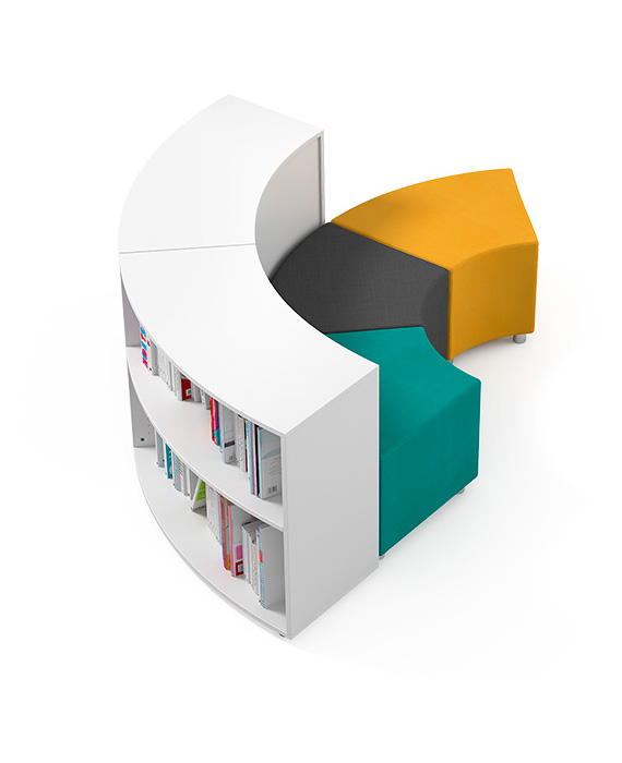 Armario Marie: armario escolar abierto y curvado. Ideal para equipar clases de aprendizaje cooperativo.