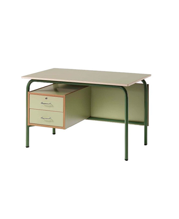 Estructura metálica en tubo de 35x1,5mm. En color verde o plata. Buck de dos cajones con cerradura.
