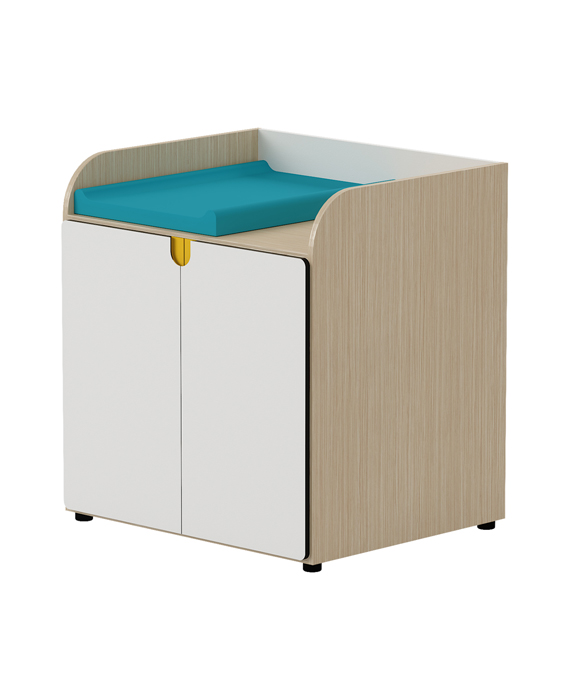 Kiddy 95: cambiador acabado en tonos neutros nórdico-blanco, en que los colores los aporta el material escolar. Diseñado para un uso prolongado. Colchoneta no incluida. Se entrega totalmente montado.
