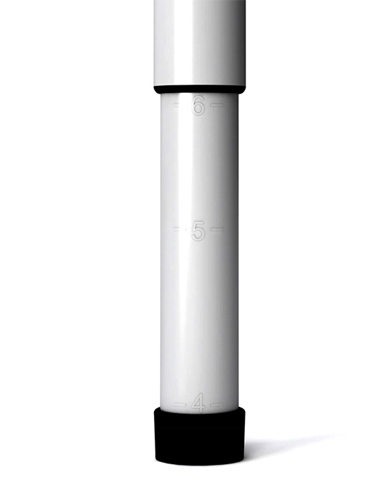 Patas regulables en altura. Estructura tubular metálica con un diámetro de 38mm. Pintada en epoxi-poliester color aluminio. Taco nivelador.